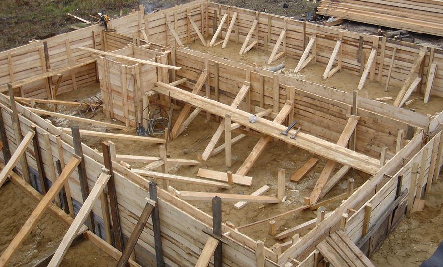 После проведения подготовительных земляных работ начинают возведение деревянных щитов: