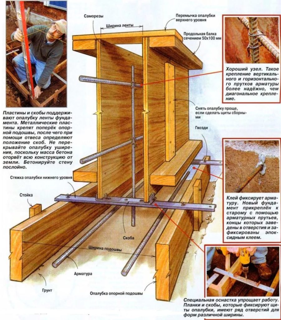 Требования, предъявляемые к конструкциям опалубки для ленточных фундаментов из дерева:
