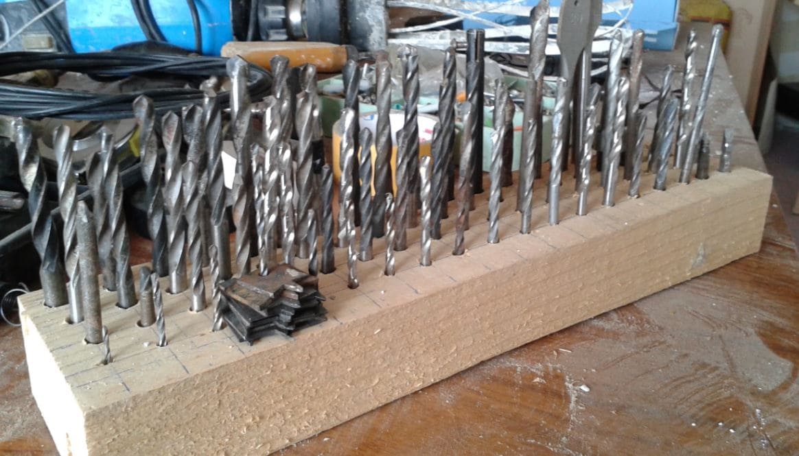 Отдельно становимся на нюансах хранения сверл. Делать это желательно, исходя из назначения (по металлу, по дереву) и согласно диаметру инструмента. Например, очень маленькие сверла (до 1 миллиметра) нужно располагать отдельно от остальных ввиду их низкой механической прочности. Так, если положить вместе инструменты 0,8 и 10, никак их не закрепив, более крупная деталь при случайном перемещении сломает более мелкую под действием силы тяжести.