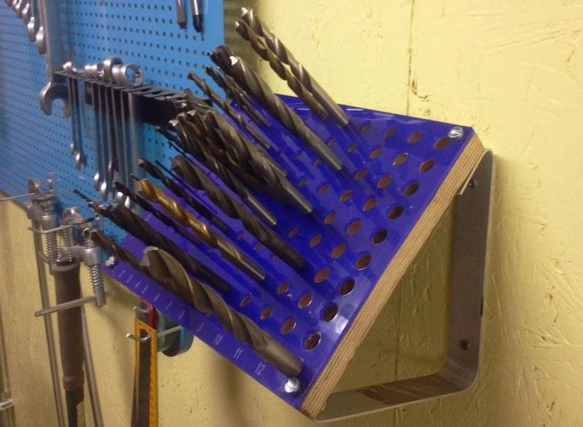 Стационарные приспособления могут быть в виде ящиков для сверл, встроенных в верстак, или настенных элементов. Их преимущество – большой вмещаемый объем, то есть можно расположить изделия самых разных диаметров и типов.