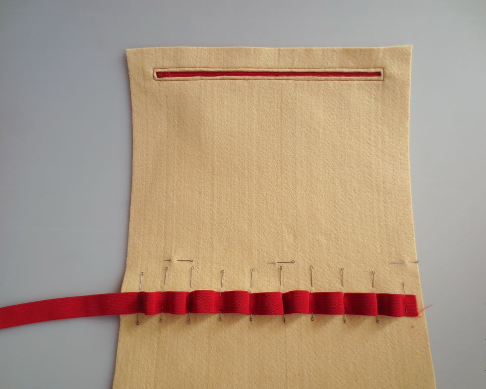 Процесс изготовления органайзера состоит в том, чтобы пришить карманы к полотну.