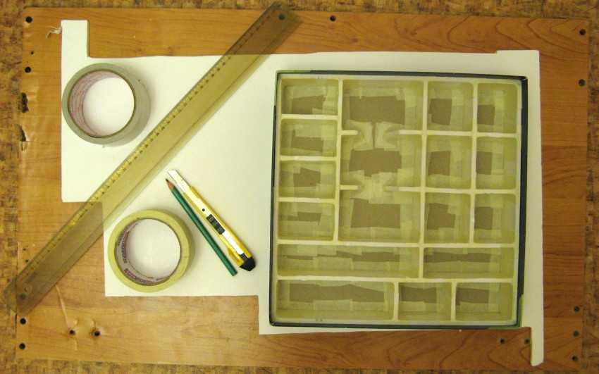 Прикинем примерно, сколько коробок у нас поместится на основе. Продумайте заранее макет органайзера.
