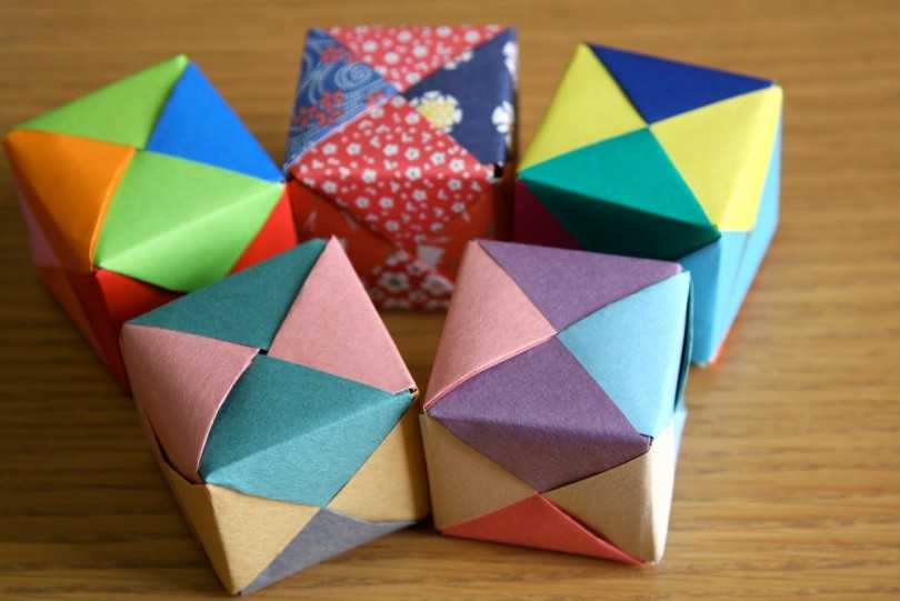 Коробочку оригами из плотной бумаги можно использовать для хранения конфет или мелких канцелярских принадлежностей — это практичная вещь, сделанная своими руками. Рекомендуется использовать двухстороннюю бумагу с принтом. Базовая форма для поделки – двойной квадрат.