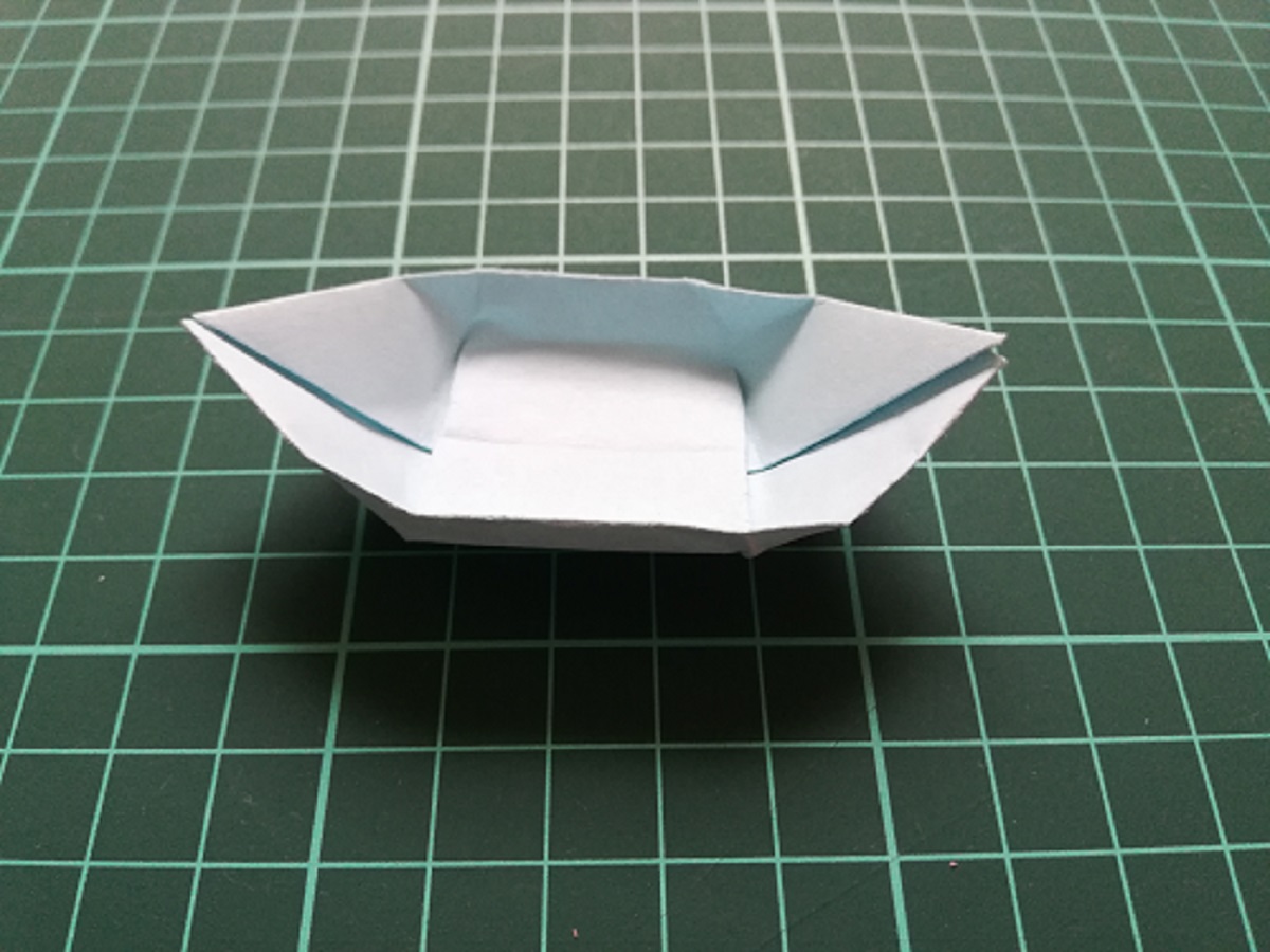 Разверните лодку и слегка согните бортики. Модель готова. Пора отправляться в плавание!