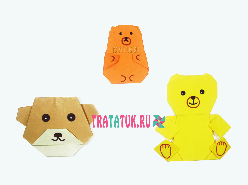 На выбор разные способы складывания мишек в технике оригами. Способы все детские, для детей разных возрастов.