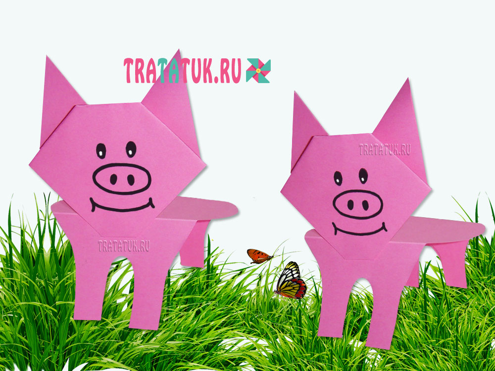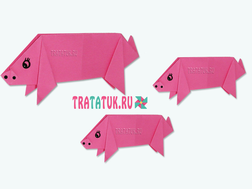 Более сложный способ складывания свиньи, особенно некоторых ее частей – пятачка и хвостика. В остальном все просто и понятно.