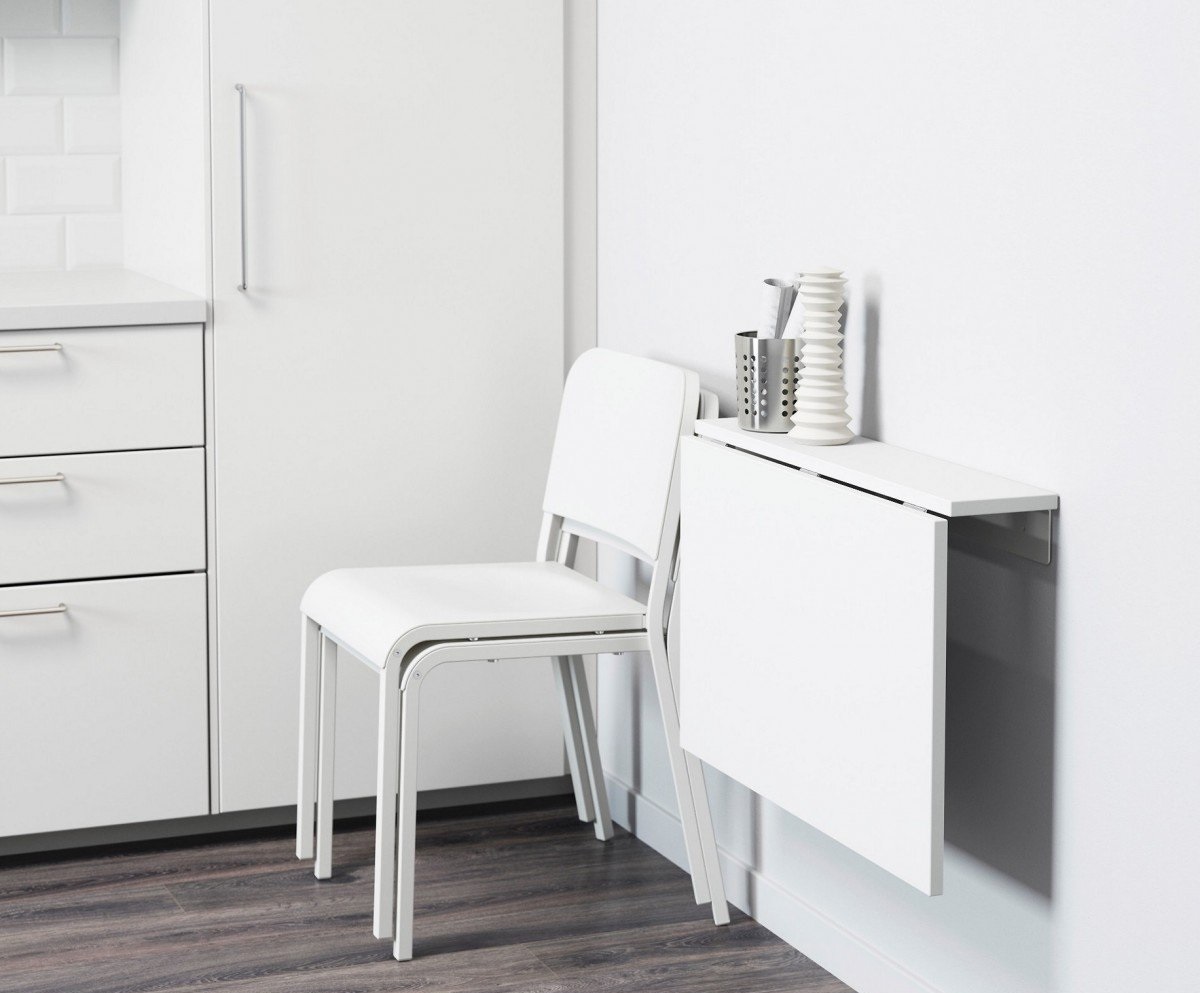 Такая модель мебели будет вполне уместна на кухне или на балконе. Столы стенного крепежа пользуются популярностью благодаря следующим преимуществам: