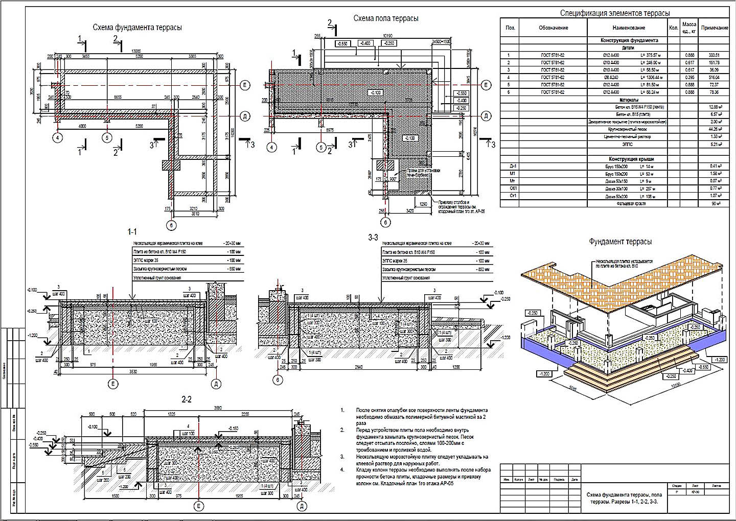 Схема устройства и чертежи основания грунтовой возвышенной террасы