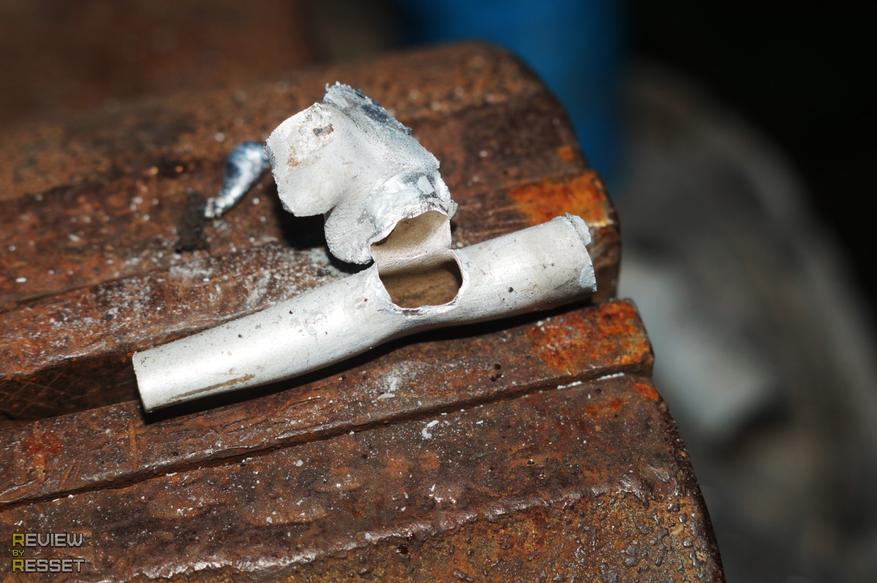 Пробуем разорвать шов. После того как трубка выскочила из тисков, я зажал ее выше, выведя из фокуса и заметил это только на стадии создания гифок
