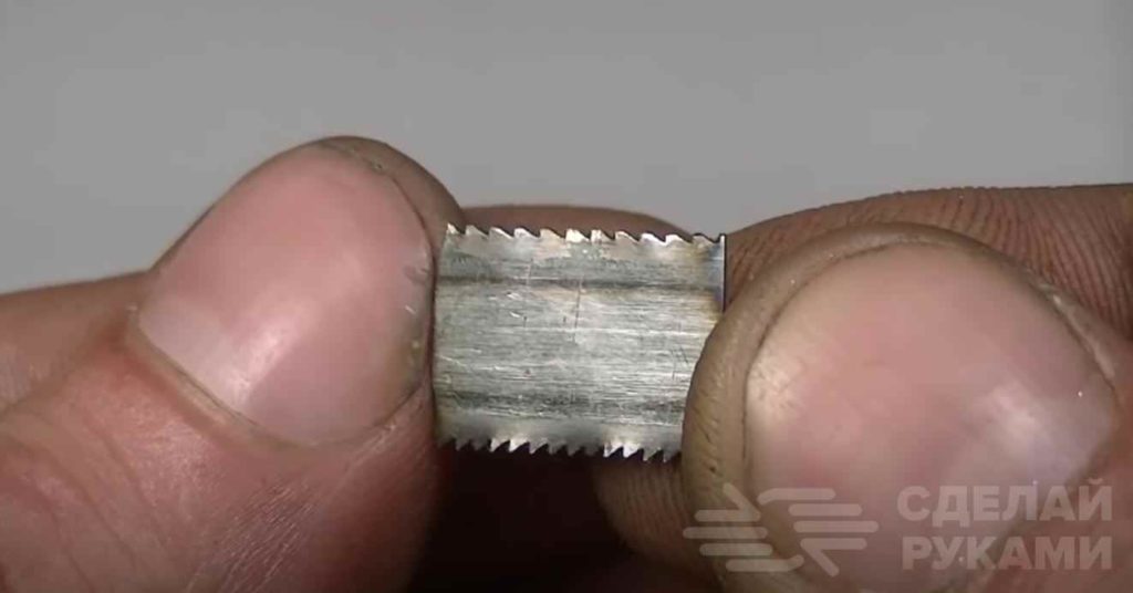 На следующем этапе от старого пильного полотна для ручной ножовки по металлу нужно отрезать кусочек длиной 13 мм.