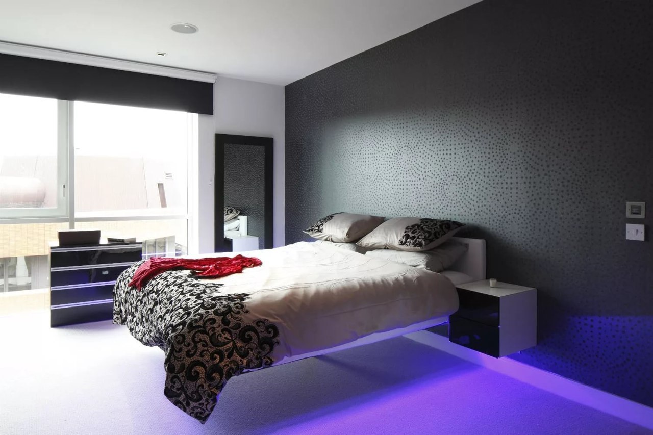 Достаточно заказать или купить светодиодные ленты и прикрепить их к дну кровати. Здесь можно экспериментировать с цветом лампочек.