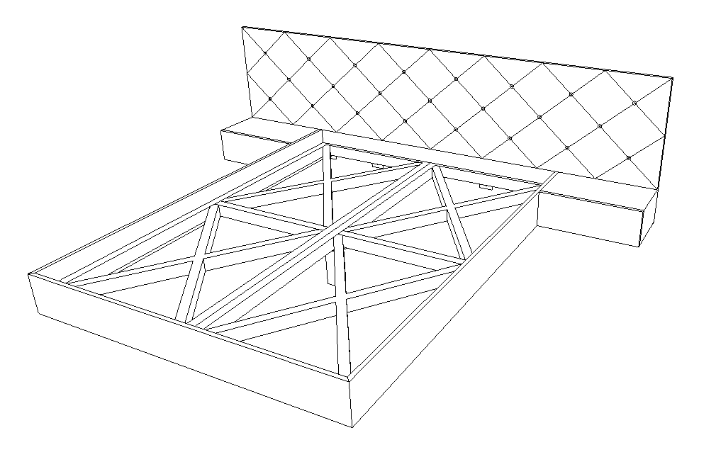 Если для создания рамы используется древесина, то применяется другой вариант конструкции, при котором сначала собирается опорная коробка, на которую сверху устанавливается рама. Разница в размерах рамы и опоры составляет около 300 мм со всех сторон, кроме изголовья. Если сделать коробку меньше, то свисающий край рамы окажется слишком большим, что создаст чрезмерно большой рычаг и потребует усиления всех узлов кровати.