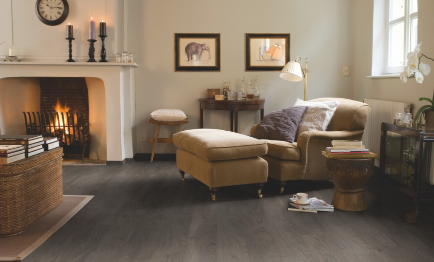 Темное напольное покрытие целесообразно в небольших комнатах, где много естественного и искусственного света. Чисто черный пол создает мрачную обстановку, его обязательно разбавляют белым.