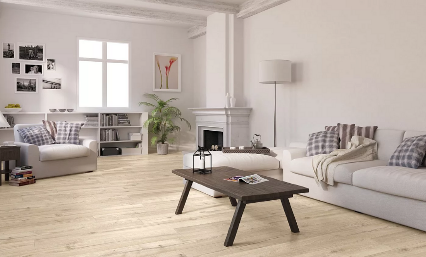 Пол традиционно делают в нейтральных тонах. Светлое покрытие имеет следующие свойства: