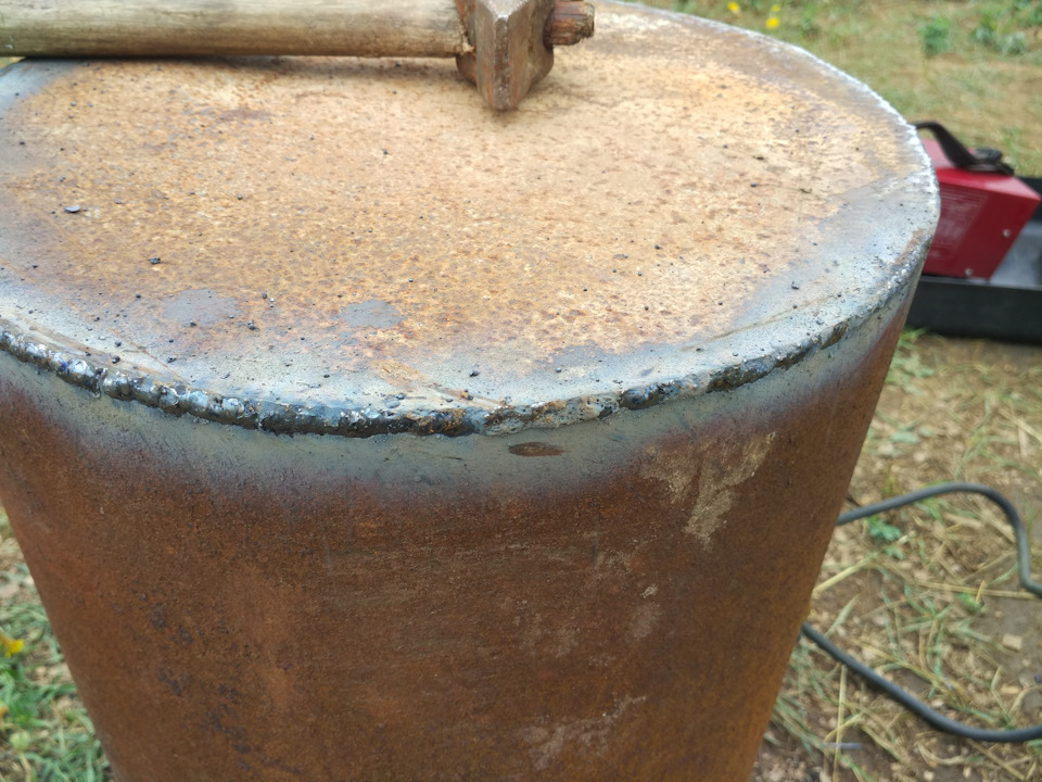 - Далее к ней приваривается днище, изготовленное из листа металла (его размер соответствует диаметру трубы).