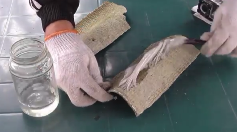 Наносить клей нужно кисточкой. При помощи этого инструмента можно промазать треснувшую кровлю и так далее. Когда растворенный в растворителе (бензине) пенопласт застывает, он становится похож по структуре на стекло.