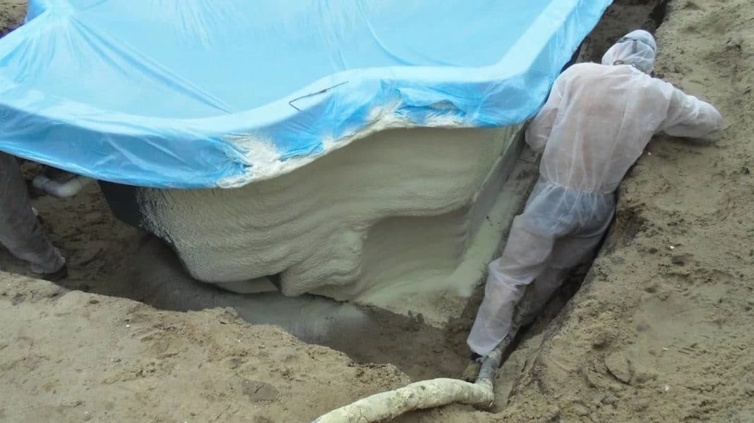 Поверх песка остаётся только уложить изолятор. Он выполняет две функции — исключает истирание дна при колебаниях воды в чаше, а также обеспечивает теплоизоляцию бассейна от грунта. В качестве изолятора может выступать стандартная подложка для каркасных бассейнов, но зачастую её свойств недостаточно. Полноценной заменой такой подложки будет недорогой вспененный полиэтилен в 2–3 слоя общей толщиной до 30 мм.