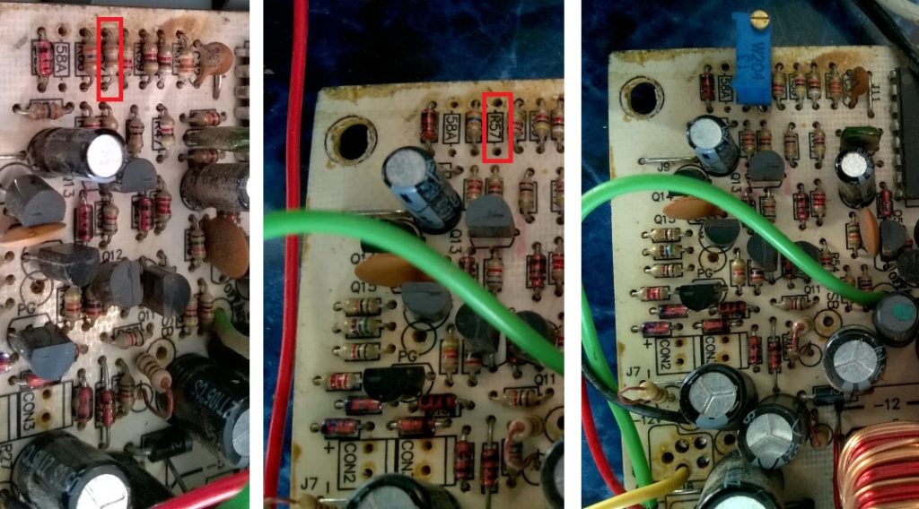 Далее выпаиваем его и измеряем сопротивление, у нашего блока оно составило 38 кОм. На место этого резистора ставим многооборотный подстроечный резистор максимальным сопротивлением на 200 кОм, предварительно выставив на нем сопротивление также 38 кОм.