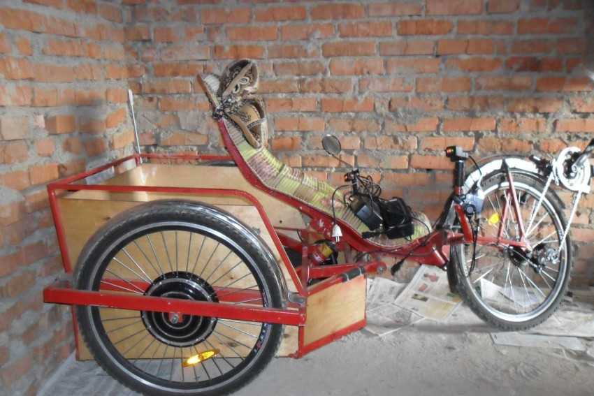 Достаточно интересным и «бюджетным» вариантом может считаться грузовой трехколесный велосипед на автомобильных аккумуляторах. Как известно, один такой аккумулятор имеет емкость в 55 Ач и может давать очень неплохие результаты. Сделать такой электровелосипед своими руками несложно, гораздо сложнее найти надежный грузовой байк с тележкой для размещения аккумуляторов. Кроме того, велосипед с опорой больше, чем на два колеса, может быть более комфортным для выезда на рыбалку, для велотуризма в пределах «досягаемости» розетки.