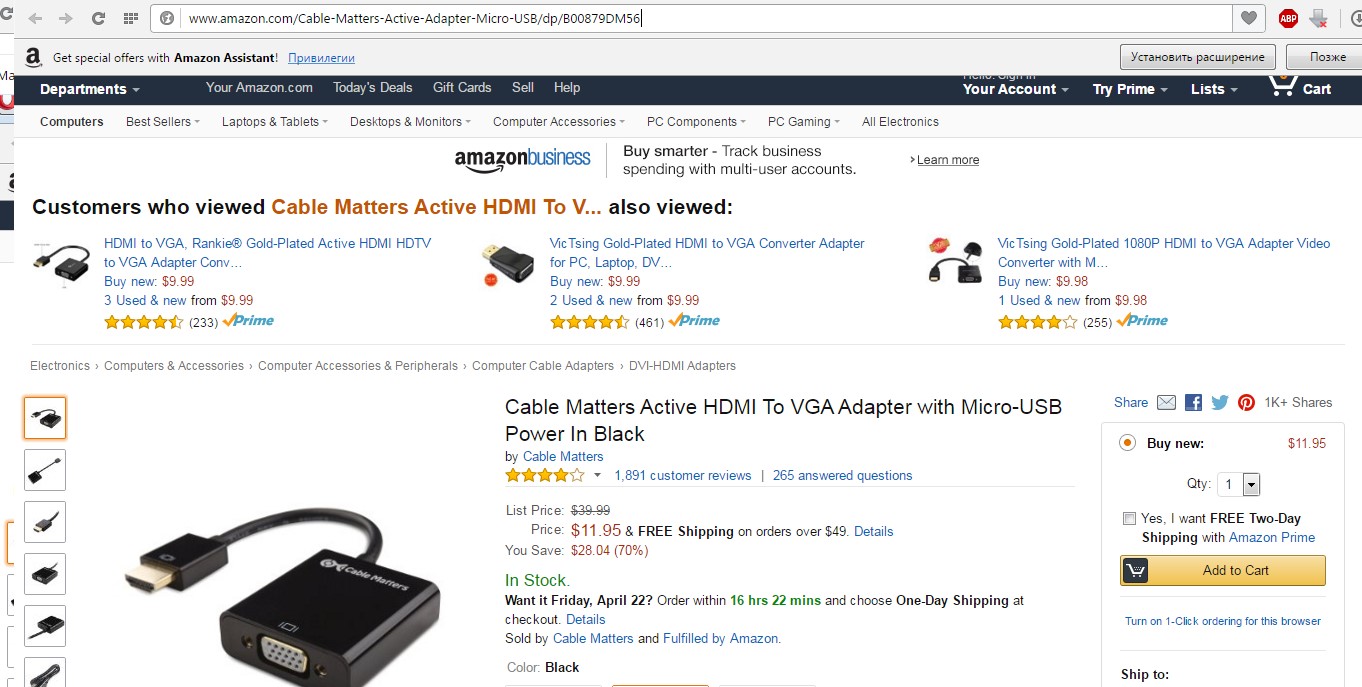 Но в любом случае, более надежного способа покупки переходника с HDMI на VGA, чем на amazon.com, пока что не придумано.
