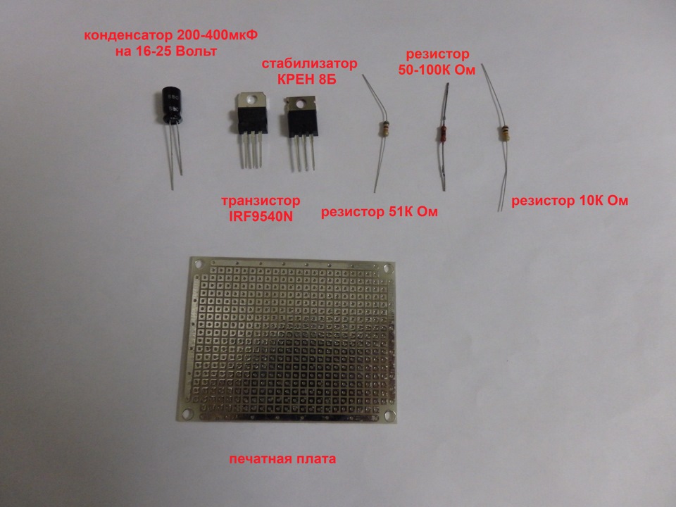 Для того что собрать схему плавного розжига светодиодов со стабилизацией мне нужно было приобрести следующие компоненты: