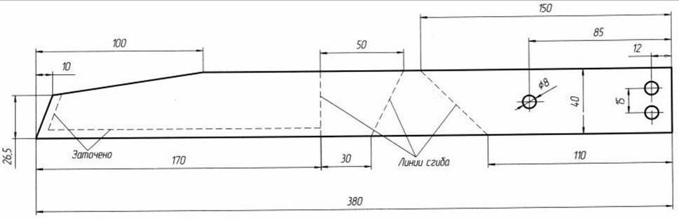 Последовательность деформации изменять нельзя (в противном случае последний сгиб не получится). Таким образом, мы получим заготовку так называемого большого плоскореза Фокина, в котором размеры лезвия составляют 170 мм.