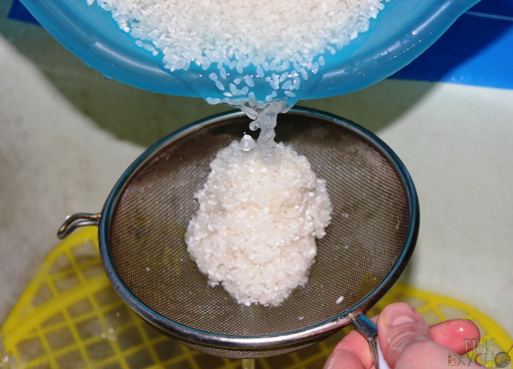 Лишнюю воду сливаем через ситечко. Так мы убережем наши рисинки от побега в слив.