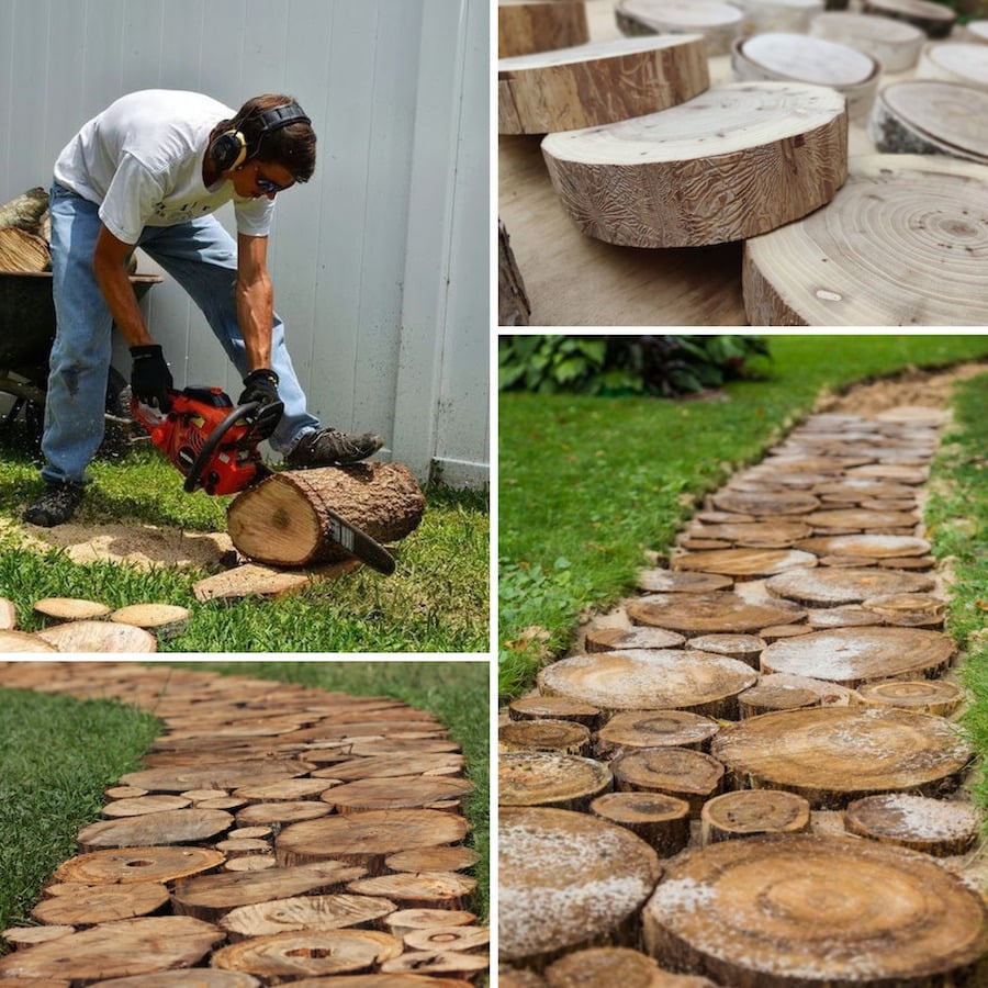 Очень привлекательно смотрятся дорожки, вымощенные спилами деревьев. Сохранение характерной текстуры придает удивительное ощущение близости к природе. Такое покрытие украшает даже невзрачные уголки сада