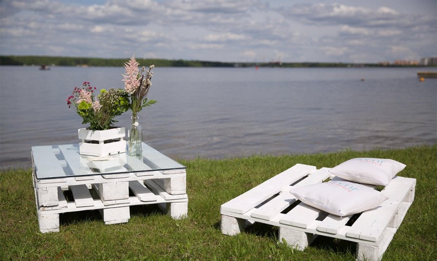 Размер поверхности стандартной паллеты равняется 120 на 80 см, что будет достаточно для журнального столика. Прикрепив с нижней стороны четыре мебельных ролика можно получить функциональную мобильную модель для веранды или сада.