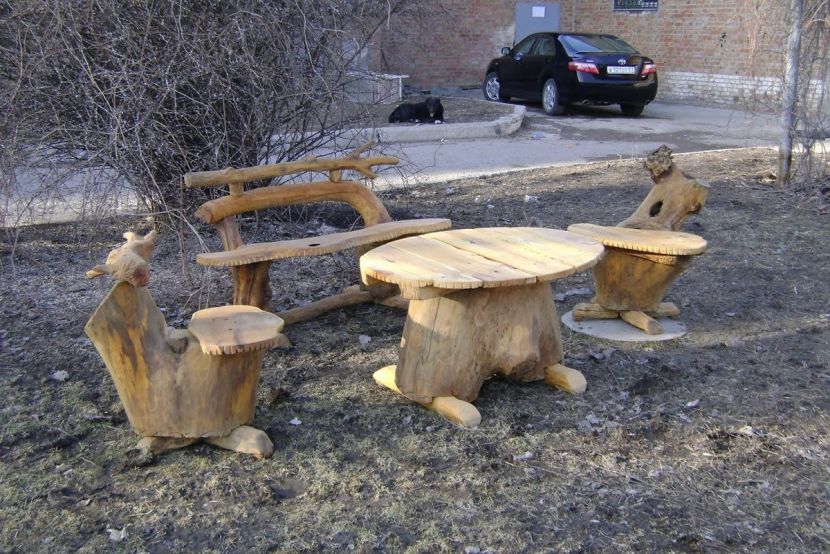 Материал отличается хорошими экологическим показателями, не вызывает аллергических реакций, при правильной обработке служит в течение длительного времени. Интересные садовые поделки из дерева: