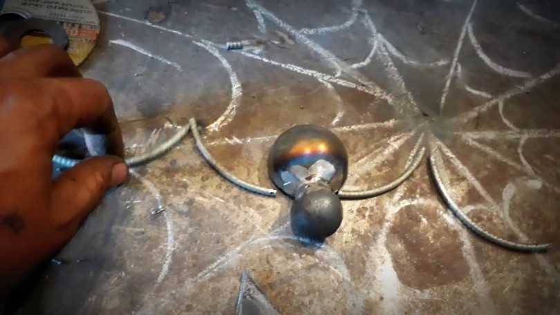 Ну а для изготовления следующей самоделки из арматуры, потребуется сварить куски прутьев в виде икосаэдра, но только без нижней части.