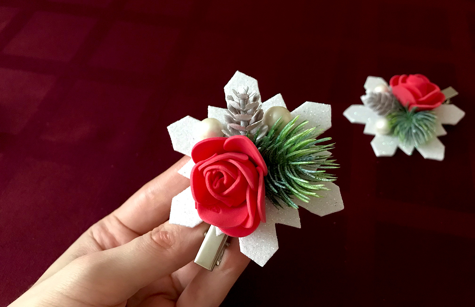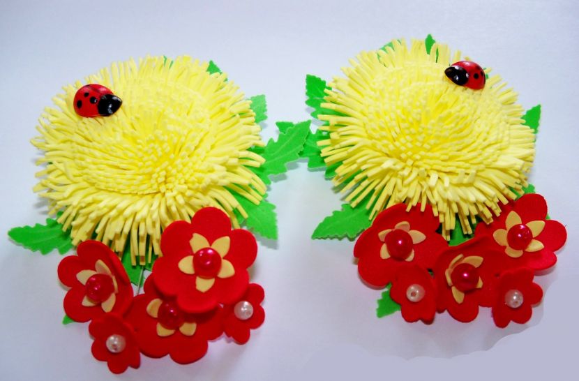 Фоамираном можно украсить любые готовые изделия из женской бижутерии – брошки, заколочки, резинки, браслеты, сережки.