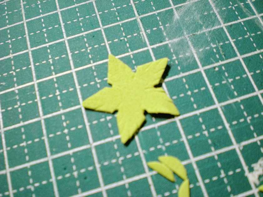 - горячем клеем прикрепите к вырезанной основе цветка зеленого цвета