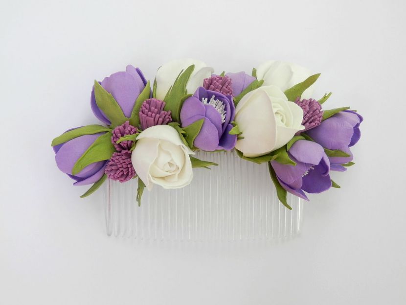 При декорировании гребня для волос лучше использовать цветочную композицию (фото 2). Материалы и инструменты: