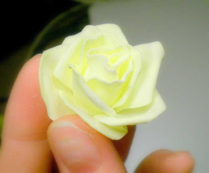 В чем же особенности фома и что отличает его от пластики или холодного фарфора? Основная – сохранять форму под воздействием температуры. То есть при нагреве вырезанному плоскому лепестку можно придать выпуклую реалистичную форму. Здесь используются утюги, плойки, щипцы и другие приборы. Можно греть его и руками, но деформация будет значительно меньше. Изделия из фоамирана не выгорают, не теряют своей формы со временем, их можно ронять, мочить в воде. А еще — обладают необычайной легкостью. За эти свойства мастерицы по достоинствам ценят фом, многие предпочли его полимерной глине и холодному фарфору.