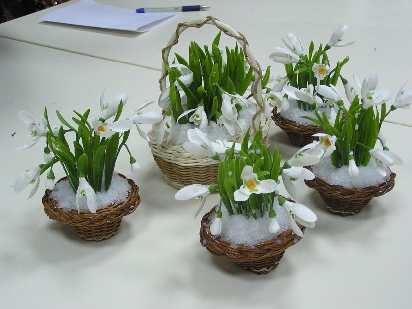 Готовые подснежники поставьте в маленький горшочек и используйте как украшение комнаты или праздничного стола.