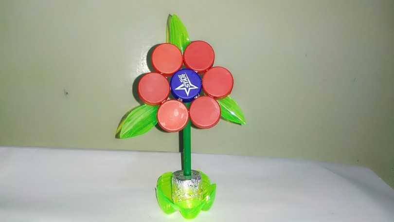 Сделать такой элемент своими руками достаточно просто. Главное — сконструировать каркас и подобрать крышки необходимого оттенка.