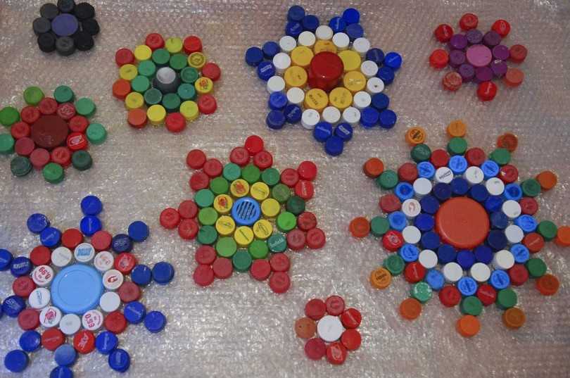 Поделки из крышек от стеклянных бутылок в виде макаронов