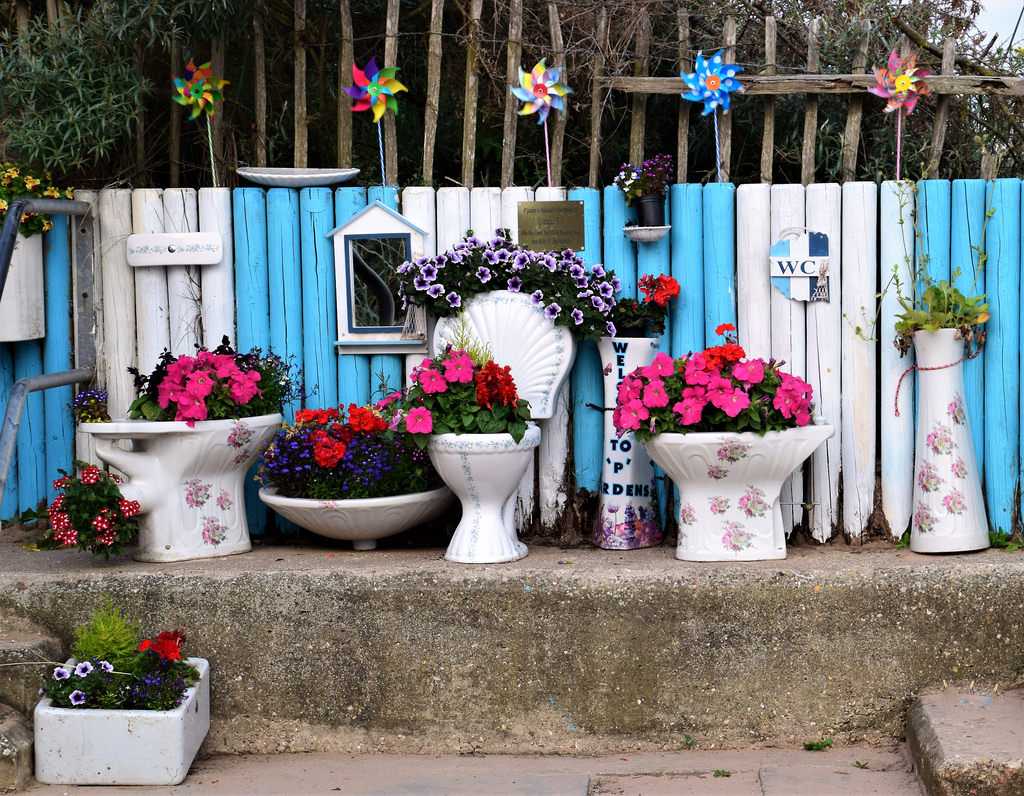 Металлический профиль, кирпич, бетон, гипс и все, что осталось неиспользованным после ремонта с легкостью превратится в: клумбу, стеллаж для садовой утвари, вазоны для уличных растений, мангалы, лавочки для сада и еще много интересных объектов.