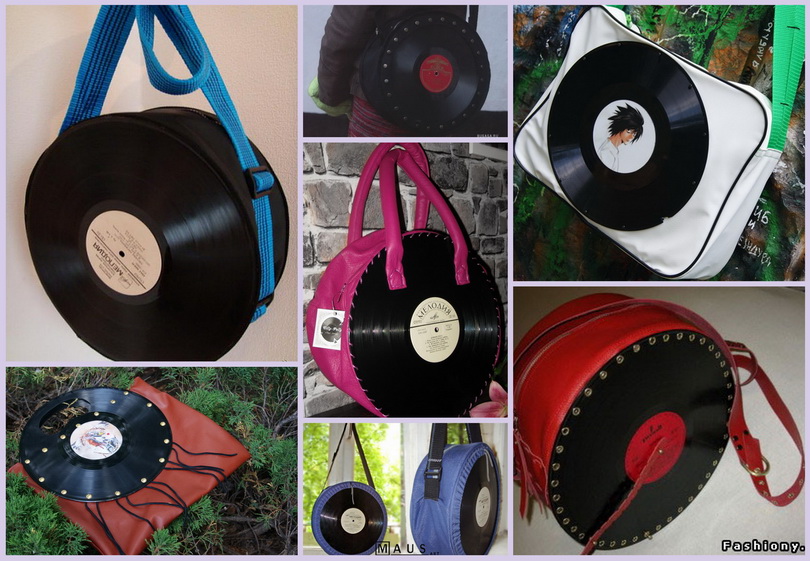 Да-да, из граммофонных пластинок различного размера дизайнеры предлагают делать мужские и женские сумки. Пластинки предполагается использовать, как боковые стенки, соединяя их тканью или кожей.