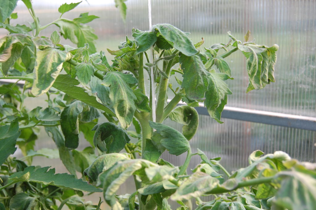 - Марганец отвечает за процесс фотосинтеза, который является чрезвычайно важным в жизни растений. Без него страдает лиственный покров томатов, при этом на листьях появляются сухие пятна.