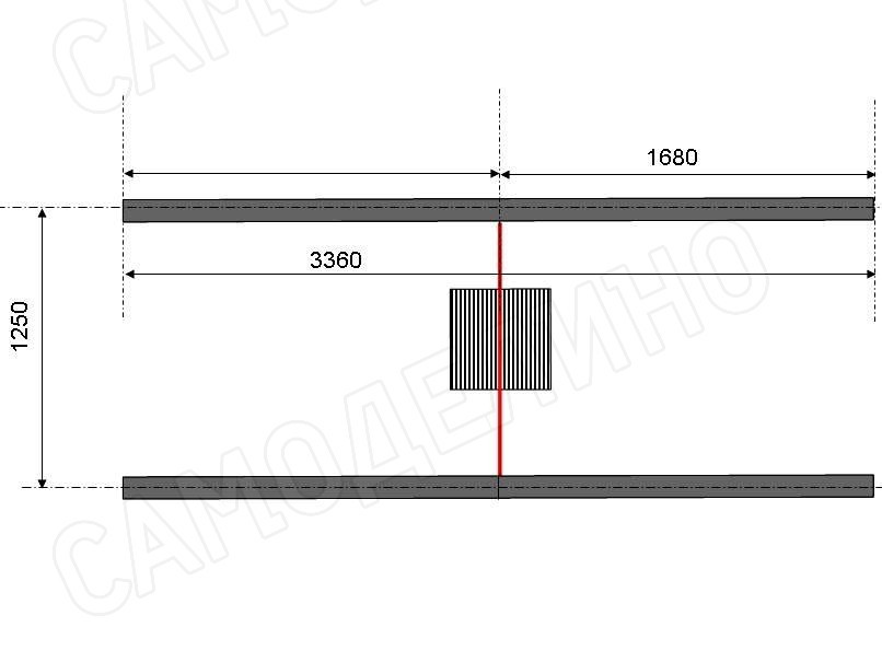 Общая длина подвеса качелей по чертежу составляет 1685мм из расчета на взрослых высокого роста. На практике оказалось, что этот размер можно увеличить до 1800мм, и для ног останется достаточный зазор.