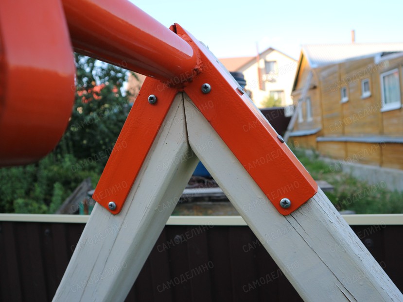Люди, у которых нет крепких деревьев во дворах, часто строят дополнительные перекладины или ищут наиболее крепкие ветви, чтобы можно было их использовать в качестве опоры. В целом крепление качели к перекладине не вызовет трудностей, так как все понятно интуитивно в данном случае.