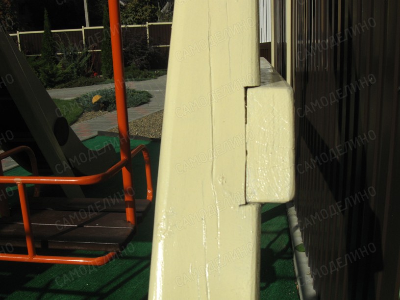 Для монтажа поперечных перекладин выполняются зарезы. Сборочные элементы из древесины следует покрыть краской с не меньшим усердием, чем металлические детали.