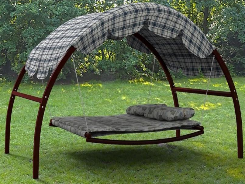 Облагородить ее можно при помощи тента. Он изготавливается из самых разных материалов. Для его установки необходимо приобрести держатель для тента садовых качелей – крепеж дуг.