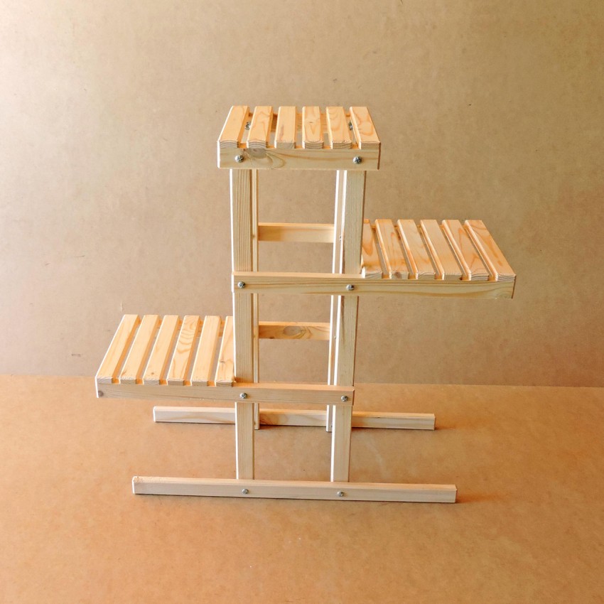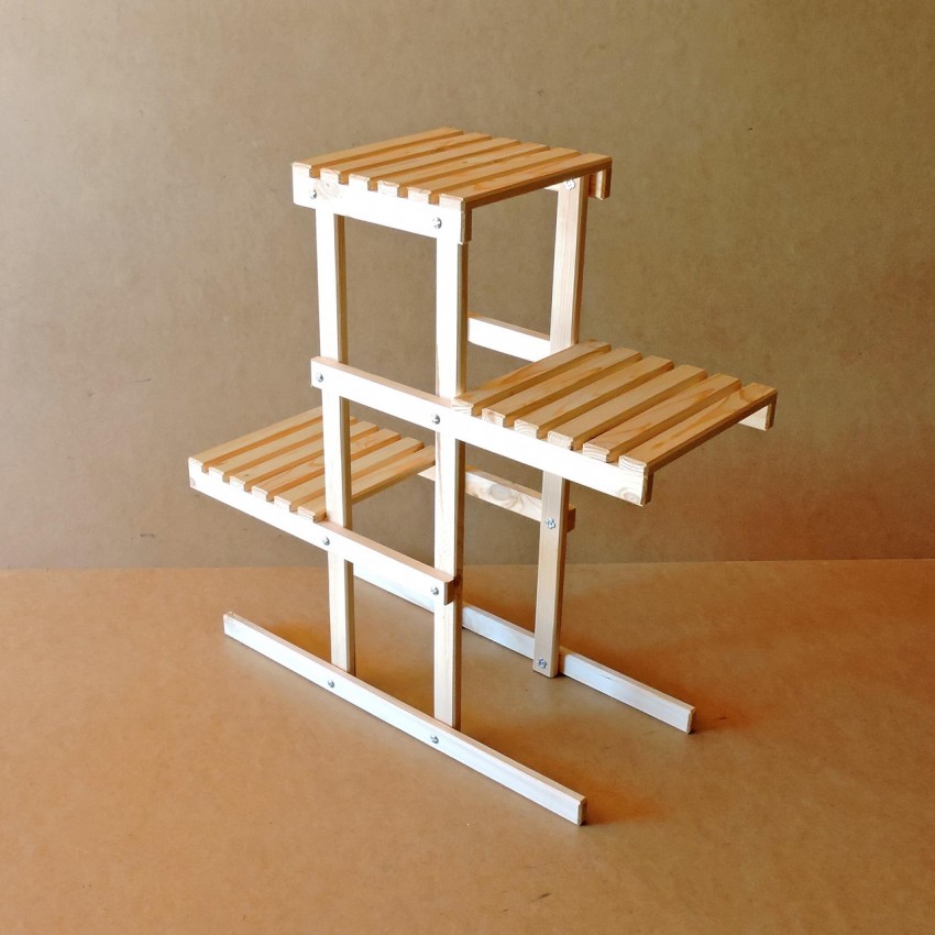 Самым доступным материалом для изготовления цветочной подставки в домашних условиях служит дерево. Для работы можно применить старые полочки, ненужные детали домашней мебели.
