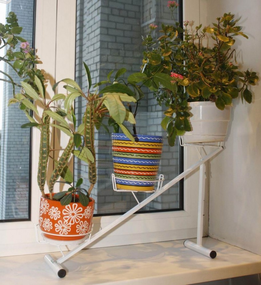 Такой вариант размещения цветов идеален для подоконника или лоджии. Подобная конструкция не массивна, поэтому не будет сильно затенять помещение.