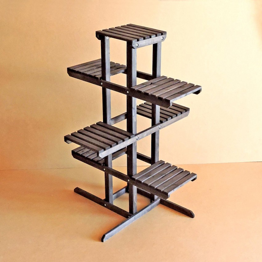Большим спросом среди любителей цветов пользуется дерево. Деревянные подставки для цветов сочетаются со стилем кантри или прованс. А конструкция из нескольких ступенек прекрасно впишется в интерьер лофт и хай-тек. При желании деревянные изделия можно без проблем перекрасить в другой цвет, и это является весомым преимуществом.