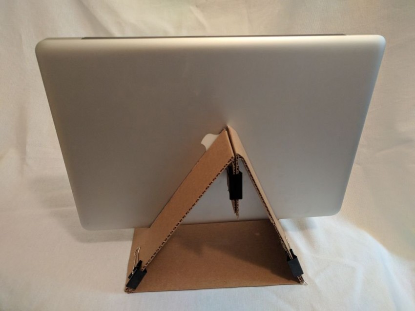 Этот способ отличается незаурядностью и простотой создания подставки. Всё что понадобится – несколько толстых книг, которые найдутся у каждого, и резинки для денег или декоративные верёвки, которыми будут использоваться для их скрепления.