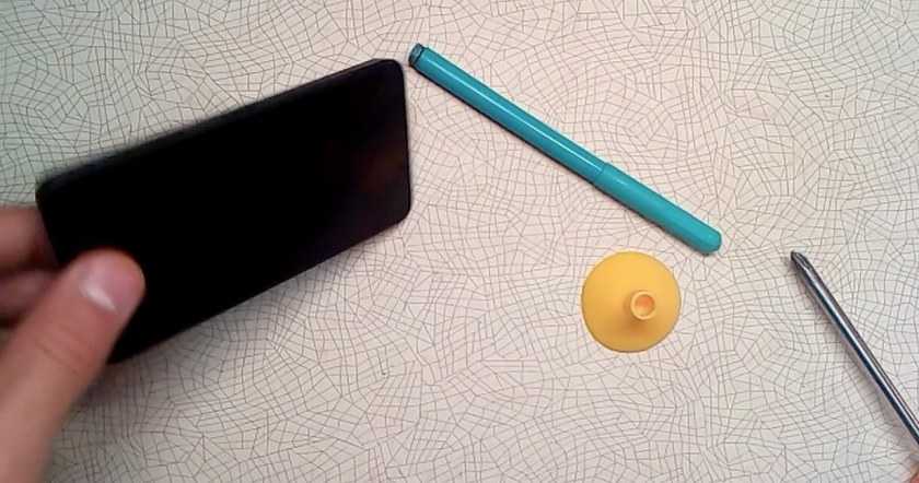 Шаг 4. Вставить присоску. Пока конопатка еще влажная, необходимо вставить присоску. Прикладывается телефон, чтобы убедиться, что присоска имеет правильный угол. Удаляются излишка замазки с помощью небольшой кисти.